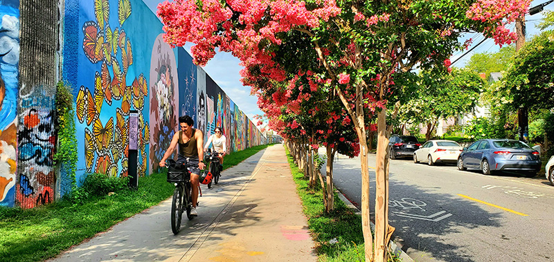 For residents interested in outdoor activities, Dunwoody offers more than 170 acres of green space and seven major parks. These areas provide several major events and festivals each year, and recreational activities such as skateboarding, tennis and more. The city is bike-friendly and encourages residents and visitors alike to enjoy the trails and lanes throughout the city. The Jim Benson Bike Trail is a popular place for monthly community bike rides.